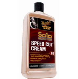 MEGUIARS SOLO CUT AND POLISH CREAM — 32 oz.; One liquid system for both compounding & polishing; Features advanced Unigrit technology that delivers level cutting and swirl-free polishing; Designed for paint and body shops; Eliminates multi-step and multi-liquid polishing process; Safe with VOC compliant formula.