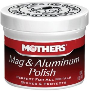 MOTHERS MAG AND ALUMINUM POLISH — 5 oz.; This metal polish is strong enough to put a shine to the most neglected metals and gentle enough to use on a regular basis; For aluminum wheels and parts, brass, alloys, and accessories; Use with a clean cloth and a little elbow grease.