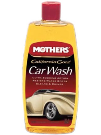 MOTHERS CALIFORNIA GOLD CAR WASH — 16 oz.; This pH balanced and super-sudsy cleaner is strong enough to remove dirt and road film, bugs, bird droppings, airborne pollutants, and other grime, without removing wax or dulling the paint; Resists water spotting.