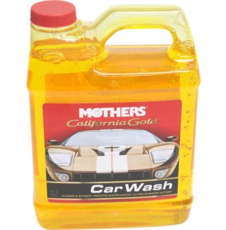 MOTHERS CALIFORNIA GOLD CAR WASH — 64 oz.; This pH balanced and super-sudsy cleaner is strong enough to remove dirt and road film, bugs, bird droppings, airborne pollutants, and other grime, without removing wax or dulling the paint; Resists water spotting.