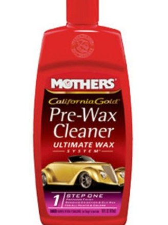 MOTHERS CALIFORNIA GOLD PRE-WAX CLEANER — 16 oz.; This cleaner is the foundation of the Ultimate Wax System; Cleans and shines your paint by removing oxidation, old wax buildup, and other contaminants; Smoothes the edges of larger imperfections and removes small scratches; Follow with step 2 Sealer and Glaze and step 3 Pure Carnauba Wax as part of the Ultimate Wax System.