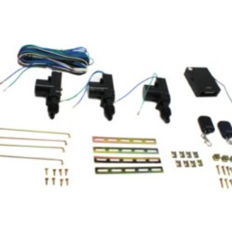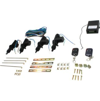 UNIVERSAL POWER DOOR LOCK/UNLOCK ACTUATOR KIT — Includes 2 remotes, a main unit module, 4 actuators (1 master and 3 slaves), simple diagram, wires and installation hardware; Converts manual door locking system to a fully functional central locking system with keyless entry via alarm control units; Activate/deactivate your alarm and lock/unlock your doors using the alarm remote control; An easy upgrade to keyless entry for vehicles with central locking; Fits 2, 3, or 4-door vehicles; Backed by 1-year, unlimited-mileage warranty.
